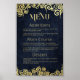 Poster Marinho sofisticado, Blue & Dourado Swirls Menu Ca