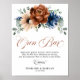 Elegante azul-Marinho, Terracotta, Terra-Laranja, tema floral, sinal de bar aberto de casamento com buquê elegante de azul-Marinho, rosas de cor Terracotta e folhas verdes de eucalipto. Entre em contato comigo para obter ajuda sobre a personalização ou se você precisar de outro produto com este design.