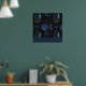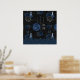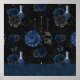 Poster Marinho Zodiac Magic | Rosas de crânio gótico azul
