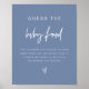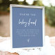 Este palpite é que o sinal de chá de fraldas do bebê apresenta uma fonte de escrita manuscrita boêmica, layout moderno minimalista e combinação empoeirada de cor azul e branca. Este jogo de bebês é perfeito para o seu evento de bebê de criança em qualquer altura do ano. Use esta modelo para editar as fontes, a cor da fonte e a cor do plano de fundo para atender às suas necessidades de eventos.