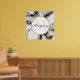 Um poster com um padrão moderno e elegante. Cinzas brancas, pretas e enfumaçados marmoreadas com fitas finas de espirais douradas ao longo do padrão. Um círculo branco com uma estrutura falsa-dourada colocada sobre cima com a sua inicial monograma e dentro de nome.