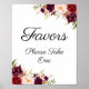 Poster Marsala e Sinal de Favor do Casamento Floral Rosa