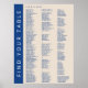 Simples de personalizar, este poster de assentos de convidados Marselha Bleu 210 pode acomodar sua recepção de casamento de até 210 convidados e você pode escolher seu próprio formato, do alfabeto ao assento da tabela. Este minimalista plano de mesa de casamento de design se dá bem aos modernos temas de casamento, assim como aos temas de casamento ocasionais ou outros eventos, com a fronteira azul marinho à esquerda e três colunas de texto azul profundo em um fundo de sono mole. Cada uma das 3 colunas tem 70 linhas cada, de modo que se você optar por formatar o gráfico do plano de mesa em ordem alfabética sem quebras de linha entre nomes, você poderá ajustado 210 convidados de casamento. Se você preferir espaços entre grupos de letras, com ou sem cabeçalhos, isso certamente diminuirá a contagem de convidados. Com esta opção, você pode organizar o gráfico por números de tabela para as mesas que sentam 6, 8 ou 12 convidados, assim como 10, e pode até combinar tamanhos de mesa se for esse o local disponível. A clássica paleta de cor tônica de azul marinho e náudia é uma escolha inteligente para todas as estações, do outono e inverno ao primavera e casamentos de verão. Personalize este poster de tabela personalizada de assentos de casamento de Marselha Bleu para sua recepção de casamento de 210 pessoas ou outro evento especial e se você tiver um casamento maior para organizar, basta personalizar e pedir 2 ou 3 listas de assentos.