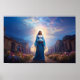 This luminous poster features Mary, the Mother of Jesus, from the Lila Faye Belle music video “The Ones Cast Aside.” She walks alone down the quiet streets of Nazareth, her expectant form radiant beneath golden light. Behind her, the other women turn their backs, yet Mary’s peaceful expression and steady steps reveal a faith untouched by fear or shame.