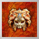 Poster Máscara de ornamentado com Penas Laranja no Fundo