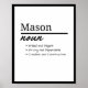 Apresentando o "Mason, Boy Personalised Name Definition Poster" - uma obra cativante e sentida de arte em parede que celebra o encanto único de um menino chamado Mason. Esta poster combina o apelo estético com um toque pessoal, fazer-o como uma adição ideal a qualquer quarto, creche ou sala de jogos. Apresentando o nome "Mason" em tipografia ousada e elegante, essa poster também inclui uma definição deliciosa que encapsula as qualidades especiais associadas ao nome. O design é moderno e na moda, garantindo que complementa vários estilos de decoração interior enquanto adiciona um toque pessoal ao espaço. Impresso em papel de alta qualidade, este poster oferece cores vibrantes e detalhes nítidos que fazem a definição ganhar vida. É perfeito para enquadrar ou exibir como está, adicionando um toque personalizado e sofisticado a qualquer parede. Esta poster não serve apenas como peça decorativa, mas também como um lembrete significativo dos traços que tornam Mason único. Quer você esteja decorando o quarto de uma criança ou procurando por um presente pensativo, o Poster de Definição de Nome Personalizado de Mason é uma escolha bonita e significativa. Celebre a individualidade e adicione um toque de personalização à sua casa com este belo pedaço de arte. Telas pesquisadas: arte personalizada de nomes, posters personalizadas, decor de nomes único, decoração de salas de meninos, arte de definição de nomes, poster de mason boy, impressões de alta qualidade, arte de na moda, meninos de presentes personalizados, definição de nomes personalizados, posters de paredes vibrantes, papel de alta qualidade, decor de parede moderno, personalizado, arte de viveiro, decorações elegantes de paredes