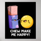 Chew Make Me Happy Funny Candy Pun apresenta um belo par de doces mastigadores gostando da companhia um do outro. Um presente engraçado para a família e amigos que adoram trocadilhos doces mastigados.