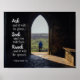 O poster de script inspiracional apresenta a Bíblia Verse Matthew 7:7, "Pergunte e será dado; procure e você encontrará; toque e será aberto."