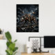 Feroz e astuta, esta hiena necrófaga apresenta placas de armadura em retalhos, painéis soldados de sucata, engrenagens expostas, olhos brilhantes e um sorriso ameaçador feito de metal recuperado. Movendo-se por um deserto de ferro-velho de veículos quebrados, vigas retorcidas, faíscas, fumaça e sombras iluminadas pelo luar, a hiena irradia instinto de sobrevivência e atitude bruta. Perfeita para salas de jogos, estúdios, garagens e interiores modernos. Uma escolha ousada para fãs de estilo pós-apocalíptico, predadores e arte de animais mecânicos robustos.