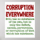 A corrupção pode prejudicar tantas coisas. Deixe o mundo saber como você se sente com esta citação temerária da corrupção: a Mau não tem substância própria, mas é apenas o defeito, excesso, perversão ou corrupção daquilo que tem substância. Excelente para os interessados em consciência social ou ativismo.