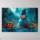 Adicione um toque arrepiante à sua decoração sazonal com esta trabalho de arte sombria apresentando um boneco de neve com olhos brilhantes cercados por jack-o-lanternas numa floresta mística. Perfeito por criar uma atmosfera assustadora, mas única em sua casa nesta temporada de Halloween ou inverno.