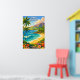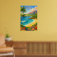Bring the serenity of the Hawaiian coast into your home with this breathtaking Maui travel poster. This piece of wall art uses a lush, painterly style to depict golden sands, volcanic cliffs, and the deep blue sea of the islands. The vibrant, warm palette and majestic perspective make it a sophisticated focal point for a living room, bedroom, or travel-themed gallery wall. A beautiful tribute to Hawaii, this print captures a nostalgic summer aesthetic