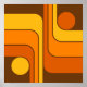 This artwork features a retro geometric design built from rounded bands and two circular focal points — one low on the left, one high on the right. The curves bend at soft right angles, creating a gentle grid that feels both structured and fluid. Warm tones of burnt orange, ochre, and deep brown give the piece a classic 1970s glow, like sun‑faded print or vintage interior design. The composition balances symmetry with motion: the circles act as quiet anchors while the arcs sweep across the canvas in a steady, rhythmic flow. The overall effect is calm, warm, and modern, with a nostalgic analog softness woven through the geometry.