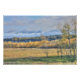 Um prado numa manhã de outono com o sol brilhando sobre o ouro assento sopra a distância.