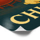 Poster de viagens ao estilo retrô do Festival de outono de Médio Chinês, uma cena festiva sob uma lua de cheio gigante brilhando. Artistas vibrantes de dança de leões em trajes de vermelho e ouro saltam alegremente, com tambores e lanternas iluminando a rua 2025.