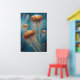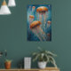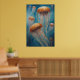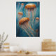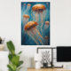 pintura a óleo do estilo HD poster ilustrando algumas águas-vivas nadando nas águas do oceano
