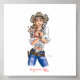 Pequena poster de 15x15 Cowgirl no balneário barista Meg A. Starr