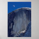 Esta foto mostra uma ascensão de meia lua sobre Half Dome no Parque Nacional Yosemite.