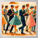 Poster Meio século Modern Martinis Dançando Cocktail