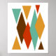 Este meio século moderno apresenta diamantes e triângulos nas cores da turquesa, laranja, amarelo e marrom. Isso vai fazer uma adição fabulosa à sua decoração!