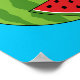 Uma ilustração de uma melancia inteira e uma fatia dela. A melancia é uma fruta oblonga ou esférica, com casca exterior verde ou verde escura, listrada, e polpa de cor doce, avermelhada ou amarelada. Esta fruta pode ser semeada ou sem sementes. Melancia é uma das frutas refrescantes favoritas do verão. Você pode comer esta fruta fresca e fria ou preparar um saboroso tremor de melancia. A melancia hidrata e fornece bons nutrientes ao seu corpo. Se você já vê muitas melancias no mercado, é hora de dizer "Olá, Summer!".