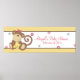 Melanie, a faixa do Chá de fraldas de macaco. Personalize a faixa com seu próprio texto. Você também pode escolher uma fonte e uma cor de texto diferentes ou usar o que já está na amostra.