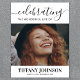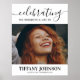 Cartaz memorial moderno com uma grande imagem da pessoa que você está lembrando, um título que diz "celebrando a vida maravilhosa de", seu nome e datas de nascimento e morte.