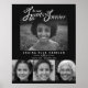 Cartaz de funeral em preto e branco simples com uma foto no topo e três fotos abaixo que você pode usar para exibir seu ente querido em sua cerimônia de despedida. Personalize com o nome do seu ente querido e as datas de nascimento e morte. Este banner de cerimônia fúnebre em nossos corações para sempre é ideal para qualquer pessoa que seja muito amada e permanecerá em seus corações para sempre. Tipografia original e design gráfico de coração por Sarah Trett para www.mylittleeden.com (Crédito da foto por Guilherme Stecanella no Unsplash, foto modelo que é apenas uma imagem de espaço reservado para você substituir).