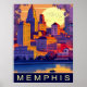 Memphis em cores vibrantes. Barcos à vela no rio Mississippi. Poster de viagens.