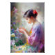 Pôster Menina admirando uma flor nas mãos