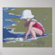 Garotinha com chapéu brincando na areia com ondas de praia... jogando na praia com uma criança? Você brincou com a umidade das ondas e a areia da areia? Esta é uma bela pintura de uma garotinha brincando com as ondas pequenas na beira da praia é um belo presente para o seu amado penteador de praia. Ela está vestindo um maiô vermelho e tem um chapéu branco grande para se manter longe do sol. O bebê da praia está feliz brincando sozinho, totalmente concentrado na sensação da água escorregadia pendurada em suas mãos. É um dia de praia - um dia maravilhoso de praia para uma menina, com muita água salgada para brincar, e um mundo de areia de praia para encontrar conchas, castelos de areia esculpidos, e pregar ao sol. Este é o presente perfeito para o beachcomber em sua vida, e para a pessoa que ama o oceano. É uma memória excelente de nossa própria juventude passada na praia, ou talvez se pareça com sua própria filha ou neta na praia. A imagem é baseada em uma pintura, chamada "Sandy Water" pela artista da Flórida Mary Hubley.
