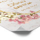 Este cartaz de boas-vindas para batismo floral geométrico, recomendado para o batizado de uma menina, tem uma moldura irregular dourada com buquês de flores de orquídeas brancas e rosadas à direita e à esquerda sobre dois hexágonos dourados que se sobrepõem a um fundo de mármore branco, com uma cruz dourada no topo. Todo o texto está dentro da moldura dourada e tem uma cor amarelo-dourado, como a moldura dourada. O nome do bebê é escrito em uma elegante caligrafia. O buquê de flores vintage com orquídeas rosa e brancas é de um cartão-postal antigo de Bertha Maguire (1862-1910), agora em domínio público.