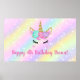 Poster Menina de 4 anos de aniversário de unicórnio fofo