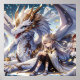 Uma anime e seu dragão branco e ouro. Bonito arte de fantasia de anime de manga.