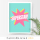 Este poster de menina adolescente, giro e rosa, "Superstar", é colorido, minimalista e uma mistura de estilos modernos e retrorreflectores. Adicione o nome de um presente personalizado fofo.