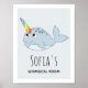 Poster Meninas Cute Rainbow Narwhon Cartoon Name Kids Roo