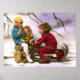 Garotas francesas brincando com seus brinquedos na neve, vintage cena de neve.