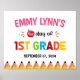 Prepare-se para capturar os momentos do "primeiro dia da escola" do precioso com nossa vibrante e divertida poster de 1rua! Apresentando um design alegre e colorido com lápis, este sinal de "primeiro dia de" é perfeito para comemorar o primeiro grande dia de vocês na pré-escola. 📚 ✏️ Para personalização mais avançada deste design, basta selecionar o botão "Personalizar o " acima!