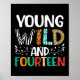 Jovens selvagens e quatorze roupas engraçadas para garotos e garotas de 14 anos. Design gráfico de 14 de aniversário bonito para a moça e o garoto celebrarem a festa de aniversários em estilo. Ele faz uma ideia presente de excelente correspondente para animais safari amantes filho, filha, irmã, 14° aniversário do Incrível presente para a garota e o garoto que está fazendo 14 anos. Legal roupa com uma citação engraçada, jovem selvagem e catorze para crianças que amam animais safari e camisetas na moda.