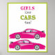 Meninas também gostam de carros! impressão de ilustração de carro de desenho rosa