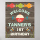 Garotos pescando primeiro aniversario de boas-vindas Poster Pescar temido ou, ofendamente, sinal de boas-vindas festa de aniversário de um garoto, com peixes coloridos, bobeira de pesca e mais sobre fundo de madeira. O mesmo convite para design e mais também está disponível na loja.