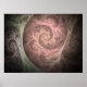 Este fractal da chama espiralante de abstrato apresenta um padrão intrincado de cor-de-rosa, creme e verde mudo num design quase orgânico.