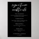 Este poster de coquetéis de assinaturas negras apresenta uma simples tiopgrafia branca da sua lista de bebidas e ingredientes para o seu bar de casamento. Um cardápio moderno e minimalista para uma recepção com a velha moda, cosmopolita, mula de moscou e margarita. Deixe ou troque nosso coquetel favorito.