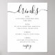Poster Menu bar de bebidas de casamento com script preto