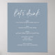 Mínimo Azul, Azul Moderno, Bar do Menu do Poster de Bebida Nupcial. O texto "bebida de vamos" não é editável. Podem ser usados para casamentos, chás de panela, chás de fraldas, etc.