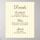Convide seus hóspedes para uma celebração sofisticada com nosso elegante poster de menu de bar do Bridal Soirée para download, onde a elegância do eterno encontra o encanto moderno. Essa poster lindamente trabalhada apresenta um pano de fundo sereno amarelo listrado, oferecendo uma canvas quente e convidativa que exumenta elegância e sofisticação. As listras gentis adicionam uma textura sutil, melhorando a estética geral e mantendo um apelo clássico. Com texto totalmente personalizável, este sinal pode ser personalizado para atender às suas necessidades.