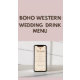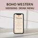 Poster Menu Boho Western bar de casamento, bebida Poste d