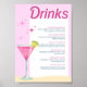 Poster Menu Cocktail de Bachelorette de Partido Rosa