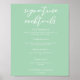 Este coquetel de assinatura verde-macia de casamento poster apresenta tipografia branca-quic para uma doce cerimônia de primavera ao ar livre. Escrito simples e elegante em menus verdes pastéis sólidos tranquilos para uma recepção de jardim.