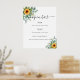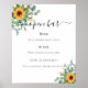 Fundo branco. Decorado com girassóis de cor aquosa e eucalipto verde. Com o texto: Abrir bar. Personalize e adicione o menu bar.